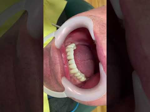 Επένθετη οδοντοστοιχία σε εμφυτεύματα .Η οδοντοστοιχία στηρίζεται σε 2 εμφυτεύματα στη κάτω γνάθο .